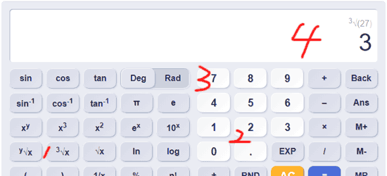 - x3 :n的立方。举例:依次输入:3 x3 = ,结果:27。